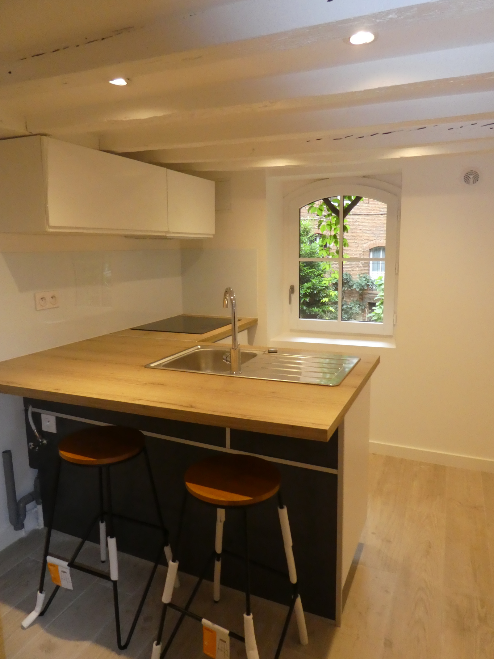 DALBADE, DS SUPERBE HOTEL PARTICULIER AVEC COUR FLEURIE, APPARTEMENT COUP DE COEUR, STYLE LOFT BIEN RENOVE SITUE EN ENTRESOL COMPRENANT : ENTREE, SPACIEUSE PIECE A VIVRE, CUISINE AMERICAINE AMENAGEE, GRANDE CHAMBRE, SE, RANGEMENTS