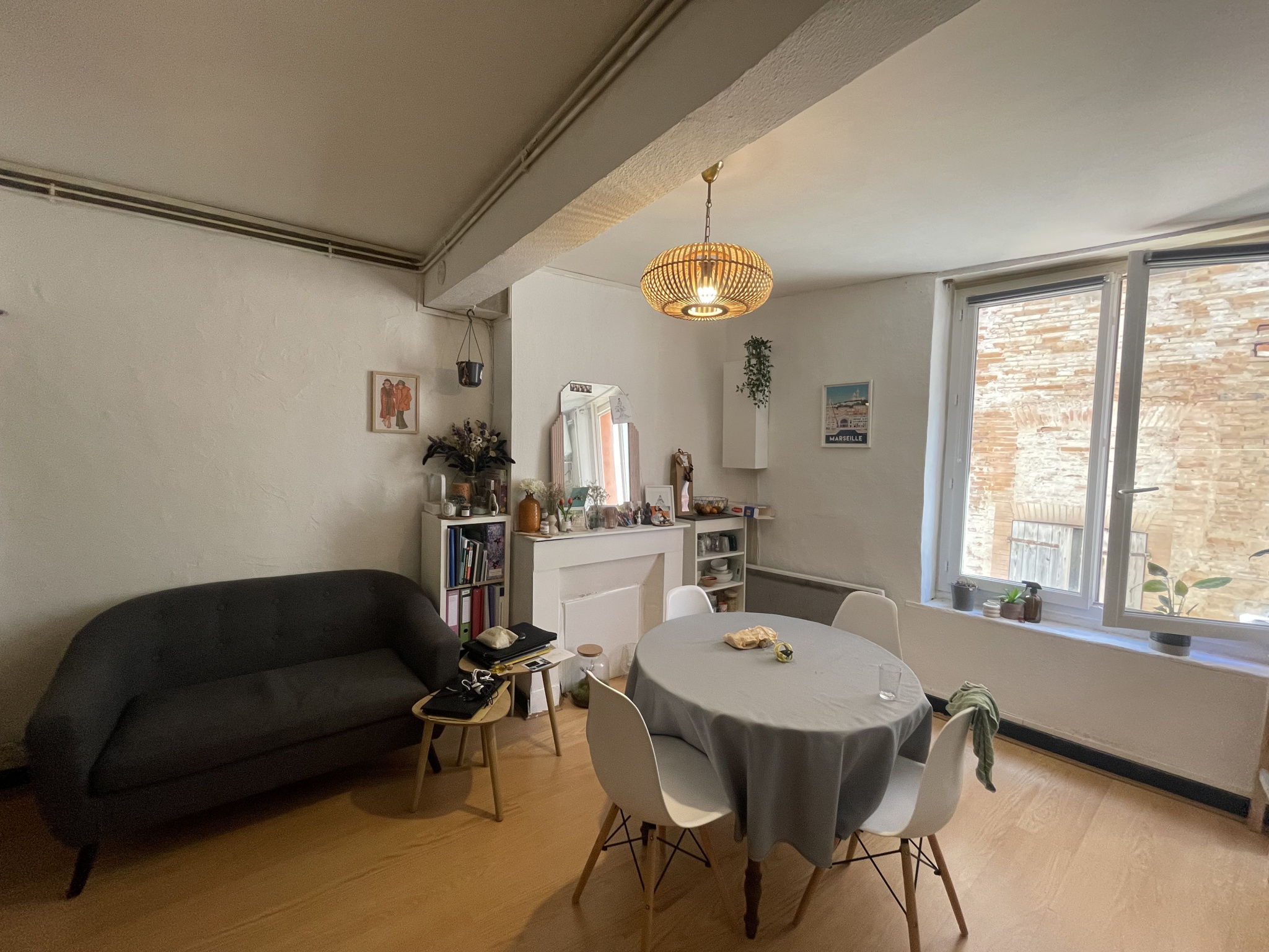 ST ETIENNE, DS IMMEUBLE DE CARACTERE, SPACIEUX APPARTEMENT ATYPIQUE, T1BIS SITUE EN RC, COMPRENANT : BELLE PIECE A VIVRE, ESPACE BUREAU, A L'ETAGE : CUISINE AMENAGEE AVEC COIN REPAS ET SAS POUR MACHINE A LAVER, SALLE D'EAU