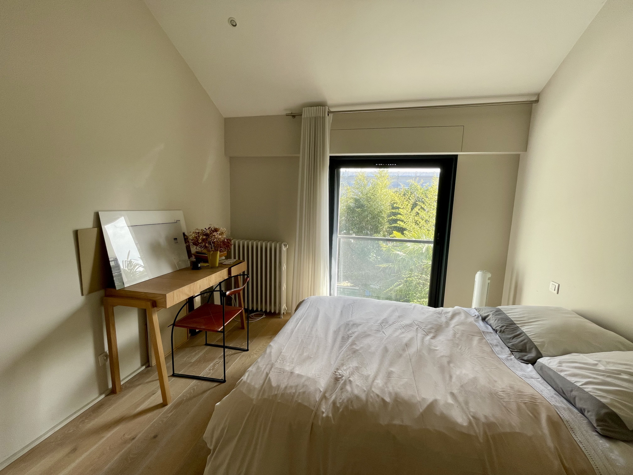 Au RDC, entrée séparée, superbe espace vie entièrement ouvert sur l'extérieur avec de grandes baies vitrées alu, cuisine haut de gamme, arrière cuisine buanderie accessible par porte à galandage vitrée .