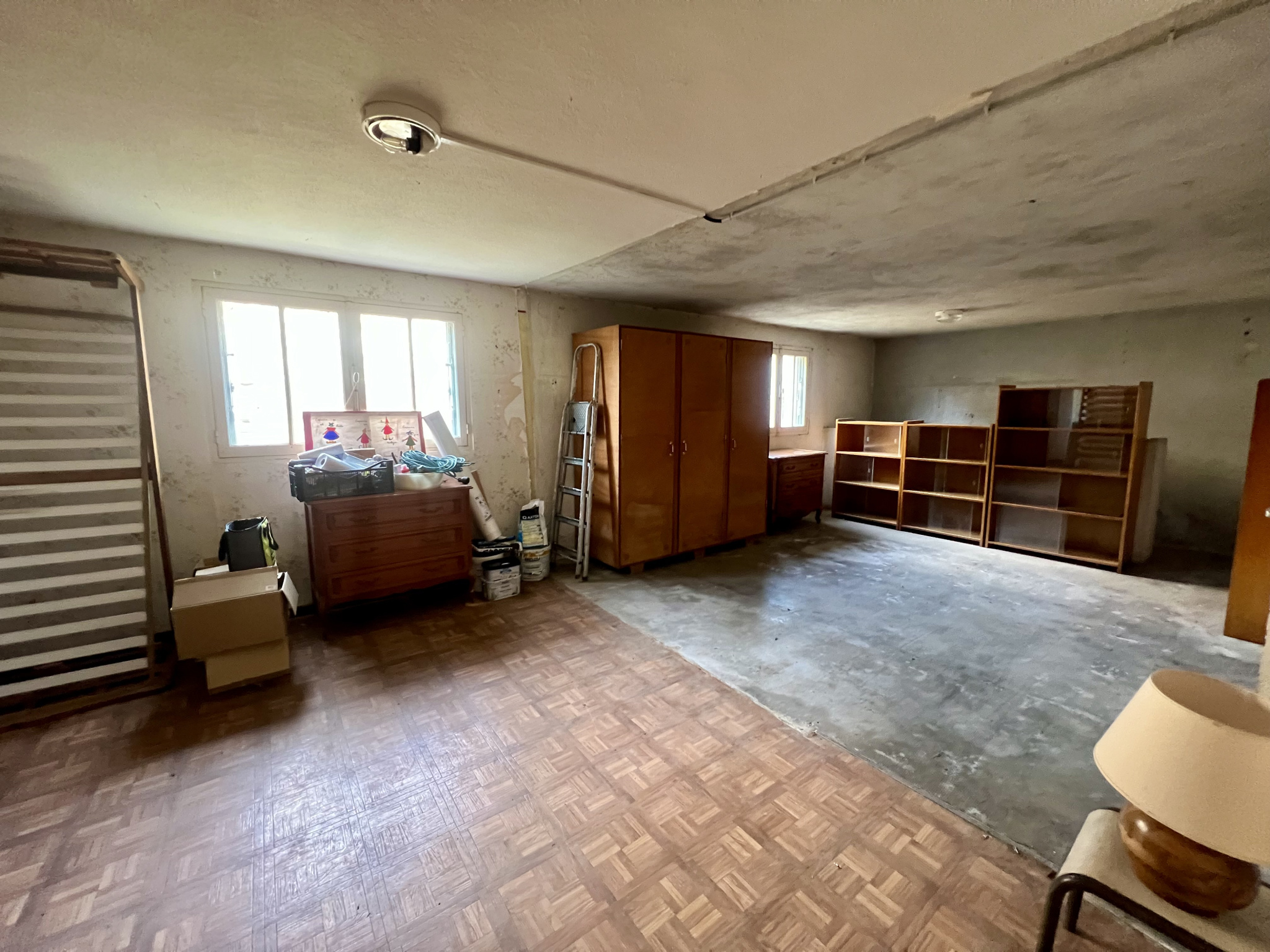 Au RDC, deux grandes pièces pouvant être transformées en habitable. Garage.