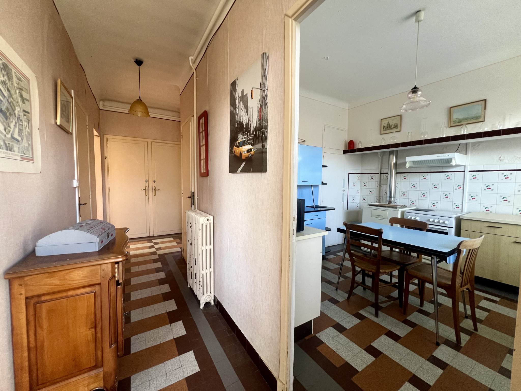 Vie à l'étage, avec cuisine, pièce de vie et deux chambres.