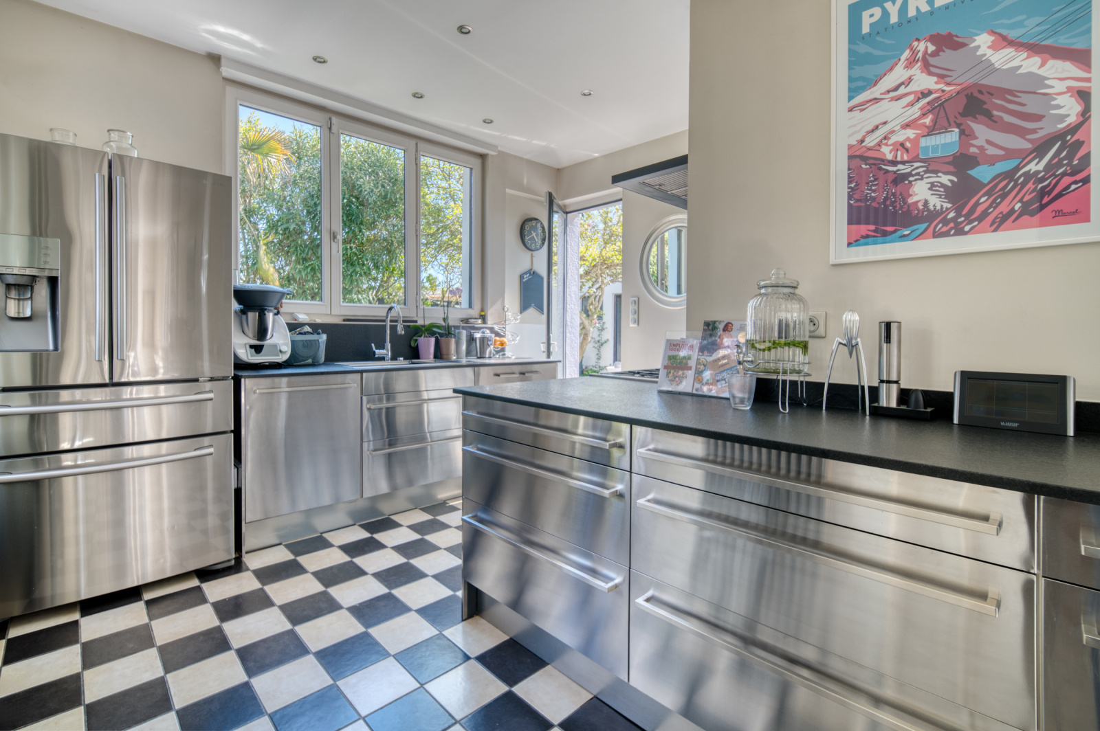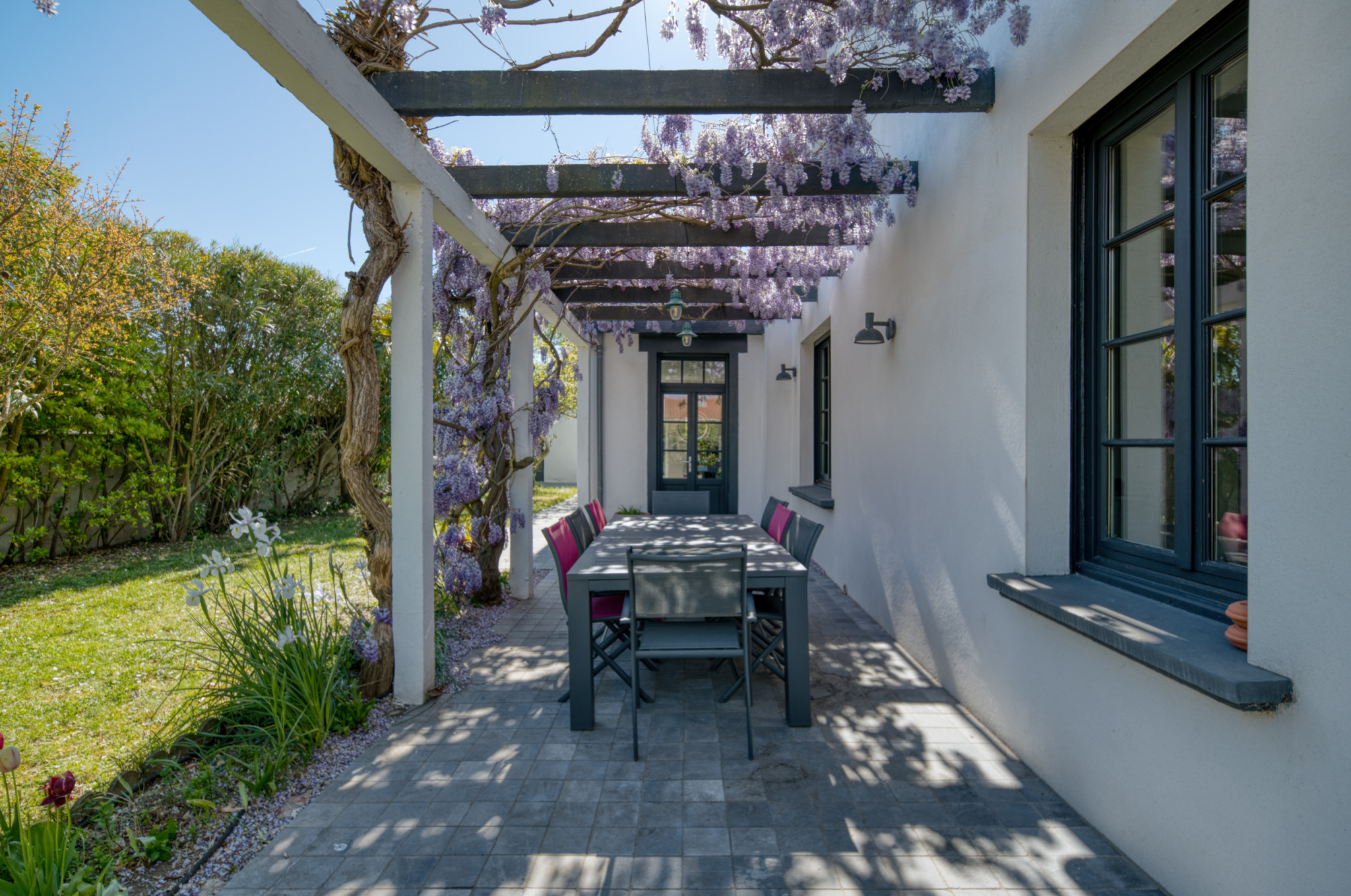 À l’extérieur, les aménagements ont été pensés pour un confort optimal : éclairage du jardin, arrosage automatique, et piscine élégamment intégrée à l’ensemble.