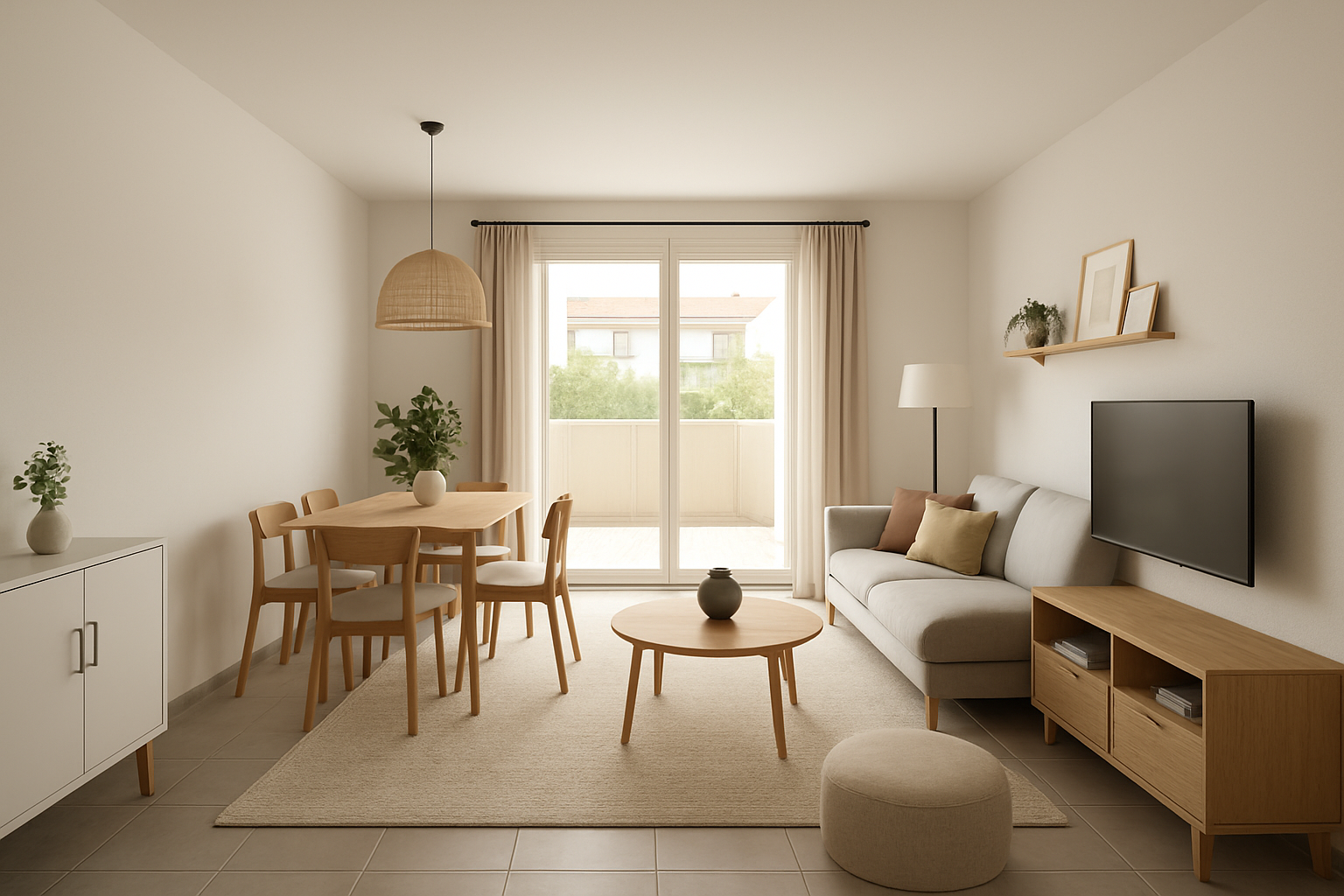 Grand T3 composé d'une entrée séparée, une belle pièce de vie avec cuisine, deux chambres, une salle de bains et un WC séparé.