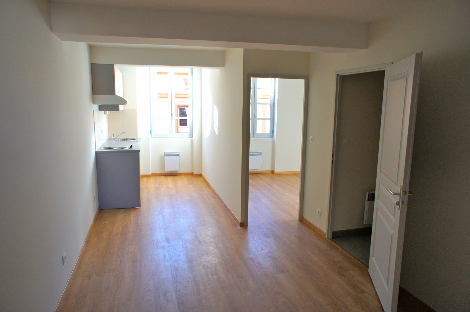 Proche Monuments aux Morts, T2 ancien rénové, 35m2, au 2ème étage d'un petit immeuble ancien. Entrée, séjour traversant sud/nord avec cuisine équipée, ouverte .Chambre séparée avec dressing. Sb et wc separés.