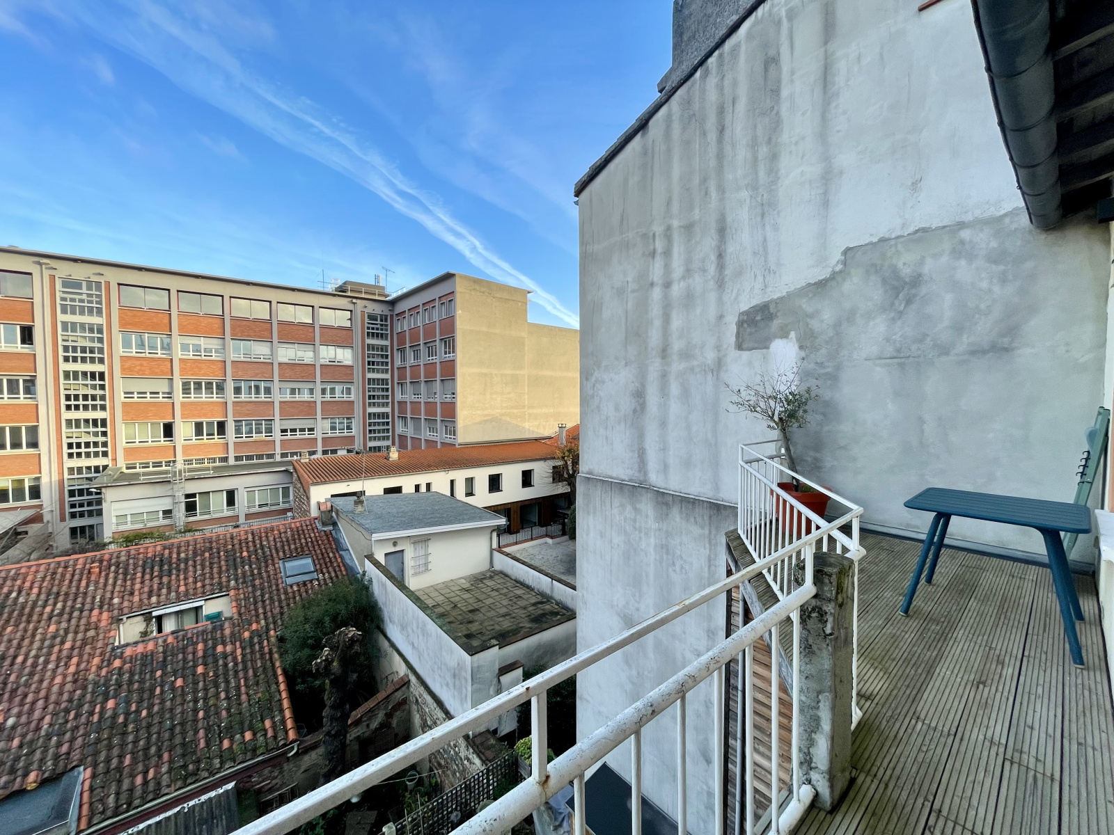 Grand balcon filant sur la pièce à vivre et terrasse sans vis à vis avec une belle vue dégagée