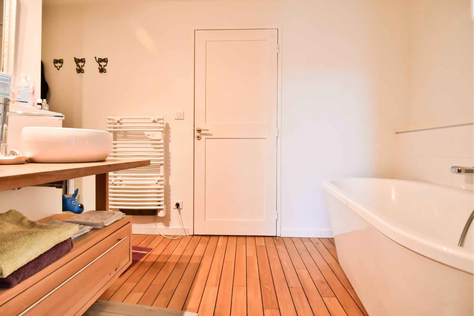 Au coeur du quartier historique, T3 de 101m2, ancien rénové par architecte,au 2eme étage. L'appartement , traversant ,offre une très belle réception, avec HSP 3,50m, et sortie sur terrasse ! La cuisine intégrée, est ouverte, avec îlot central . 2 chambres avec parquets anciens sont séparées par une salle de bains ( douche italienne, meuble 2 vasques, baignoire, sèche serviettes). Espace bureau, buanderie., wc sep.Cave.Chauffage électrique et poêle à bois.