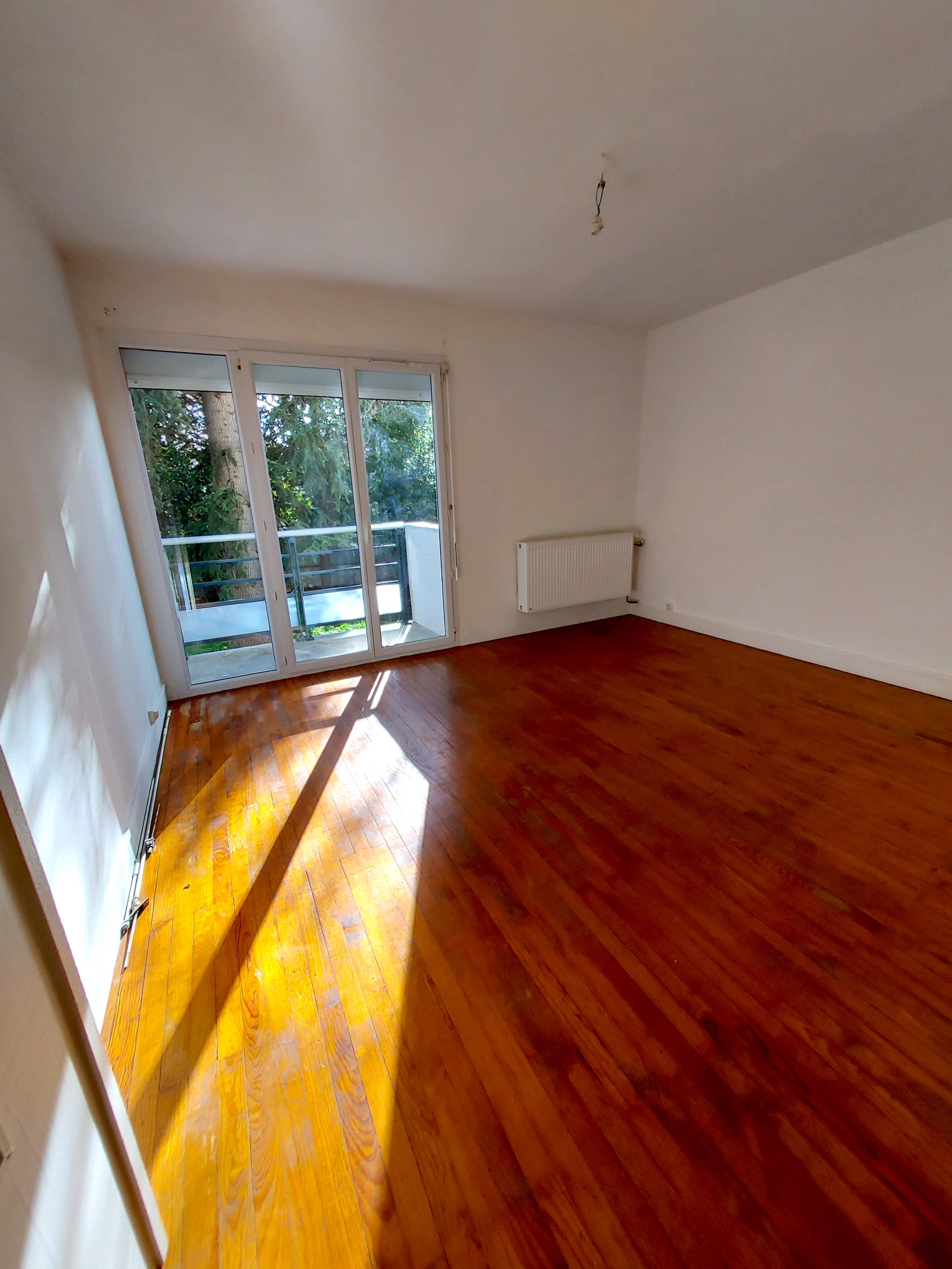Appartement traversant de 3 pièces, 54m2 . Entrée avec placard, séjour au parquet massif et murs blancs . Une grande baie vitrée ouvre sur le balcon offrant la vue sur le jardin arboré de la copropriété. Cuisine indépendante. 2 chambres. Salle de bains et wc séparés.