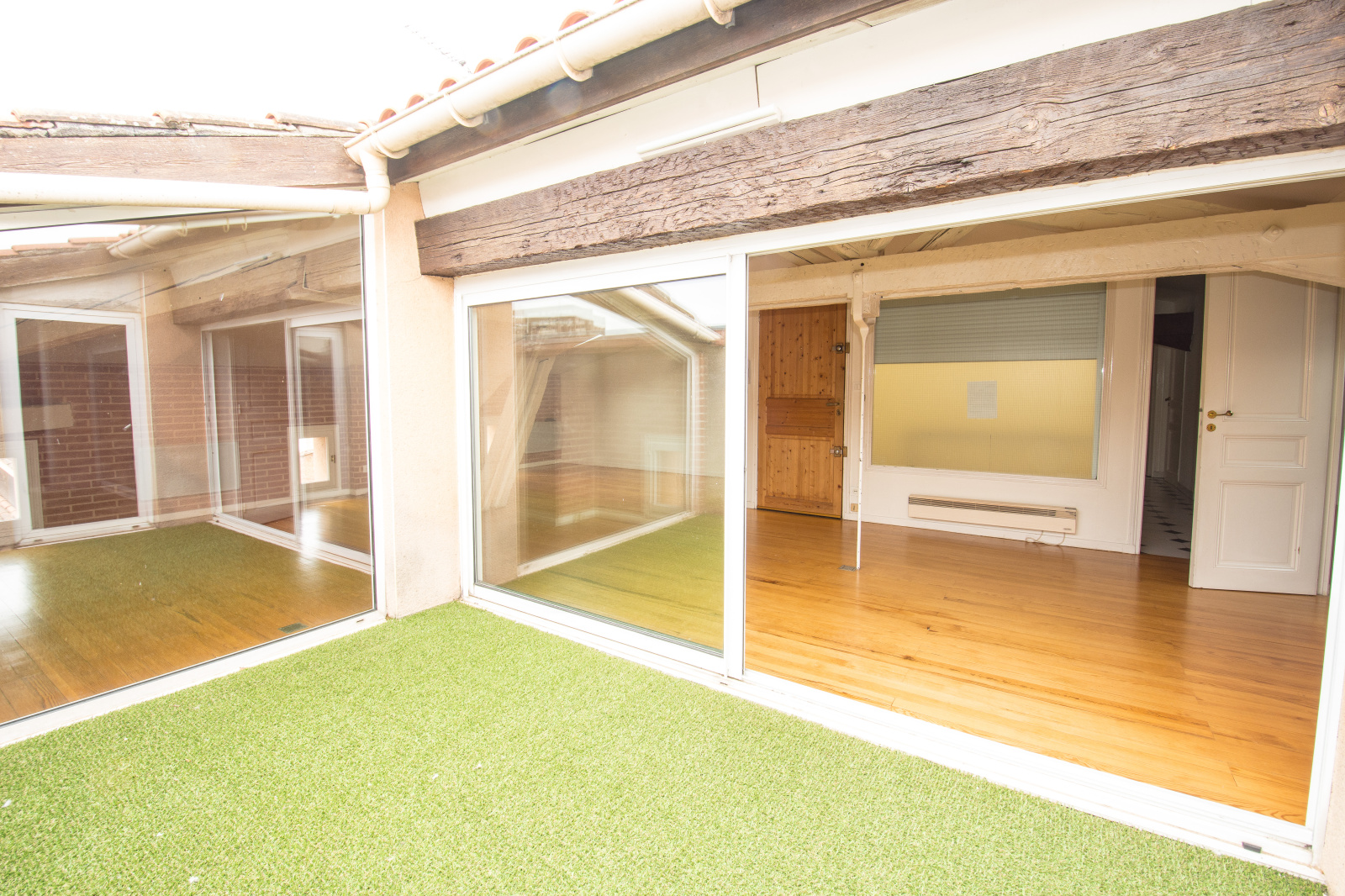 Au 3ème et dernier étage d'un bel immeuble ancien bien entretenu, appartement de106m2 au sol et 62m2 carrez. Il se compose d'un grand séjour ouvrant sur terrasse, sans vis à vis, offrant une vue imprenable sur les toits de TOULOUSE. Charme de l'ancien, avec poutres et parquets, lumineux et calme. Belle cuisine indépendante entièrement équipée. 3 chambres en partie mansardées, dressing, et salle de bain, wc sep. cave.